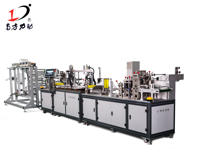 此外值得一提的是,此款口罩生產(chǎn)環(huán)境及生產(chǎn)設(shè)備,口罩、手套、防護(hù)服等耗材都需在凈化車間中生產(chǎn)。設(shè)備使用的是東莞市南方力勁機(jī)械有限公司所生產(chǎn)的全自動(dòng)聯(lián)動(dòng)一體折疊口罩機(jī),從原材料3~6層,自動(dòng)化完成作業(yè),其中包含制作工序有自動(dòng)印刷、自動(dòng)上鼻梁條、折疊成型和耳帶焊接;設(shè)備通過伺服送料,定位系統(tǒng)與每個(gè)制作工位 配合, 的生產(chǎn)出折疊口罩;為了應(yīng)付市場需求,根據(jù)產(chǎn)品可以對模具進(jìn)行調(diào)整,生產(chǎn)出各式各樣的折疊口罩,拓展市場占有的份額;國家高新企業(yè) 折疊式設(shè)備生產(chǎn)線。