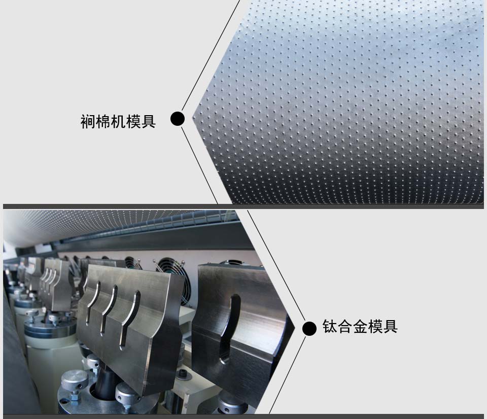南方力勁汽車腳墊壓花機,超聲波模具采用鈦合金材料,鈦合金材料不但材料貴,且較難加工,致使超聲波鈦合金模具價格比超聲波鋁合金模具和普通超聲波鋼模高出了三至四倍。雖然鈦模價格較高,但其具有良好的音響傳導特性和抗拉伸強度,使超聲波裥棉機在持續工作的時候會具有良好的出力,以及發熱量小,不易爆裂,使整個機臺具有較好的穩定性,適合汽車腳墊和加厚濾材的生產。