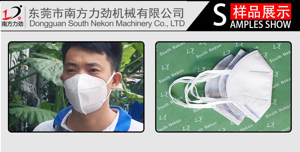目前市場上折疊口罩均采用手動熔接都需人工一片一個點波熔接,產能只有3個/分鐘,生產效率較低,且廢品率高。南方力勁機械有限公司新研發制造了全自動折疊口罩耳帶焊接機,需要一個操作員將口罩本體(片體)一片一片放入送帶夾具上,機械后續動作至成品皆由機臺自動操作完成,效率高,每分鐘可達25-30個。